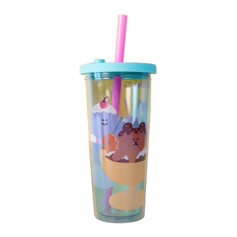 Schattige Kleuterschool Kind Bubble Theekopjes Custom Plastic Trommel Beker Kid Drinkfles Met Stro