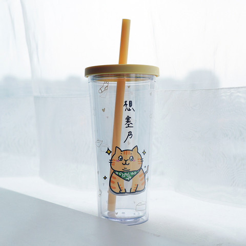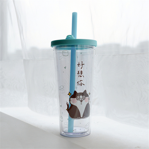 Groothandel Dubbele Muur 24Oz Mode Kantoor Mok Plastic Herbruikbare Koude Beker Met Deksel En Stro